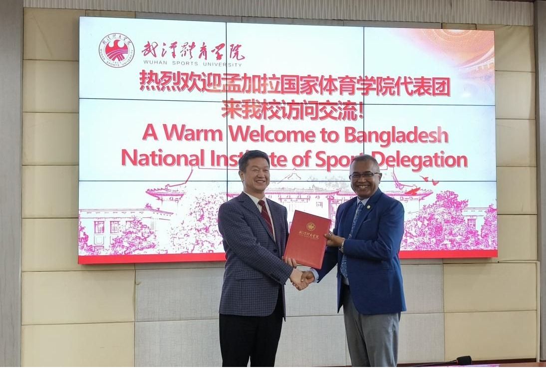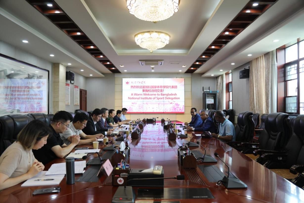 新闻网讯(通讯员毕烨)5月26日,孟加拉国家体育学院代表团一行来校访问交流。孟加拉国家体育学院总理事穆罕默德・穆尼鲁尔・伊斯拉姆准将,青年和体育部高级助理秘书穆罕默德・卡比鲁尔・伊斯兰・汗,板球教练阿萨杜尔・哈克・杜尔,湖北省对外科技交流中心合作发展部党支部书记兼部长李群,校党委常委、副校长朱磊参加座谈交流。
