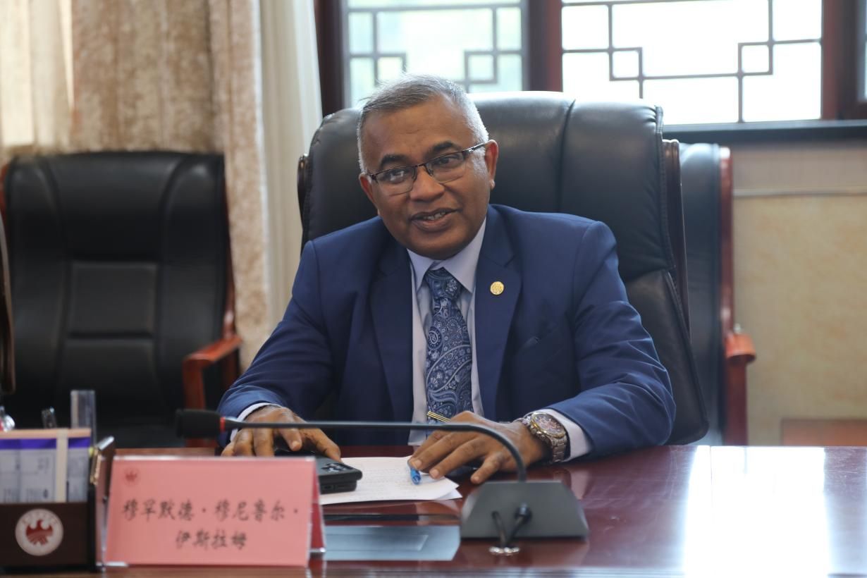 朱磊对穆罕默德・穆尼鲁尔・伊斯拉姆一行表示热烈欢迎,并介绍了学校在学科建设、人才培养、国际交流等方面情况;他希望以此次交流为契机,进一步深化校际合作,实现资源共享、优势互补、合作共赢。