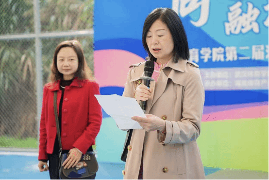 武汉音乐学院国际交流处处长王梅发表致辞。她提出匹克球体验赛是增进友谊的重要契机,这场别开生面的体育活动恰似在汉学生与港澳台学生之间文化融合的桥梁。不仅能够锻炼身体,更能增进彼此的了解,真正体现了“以体育人、以文化人”的教育理念。
